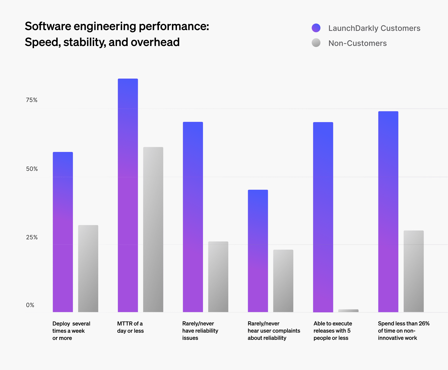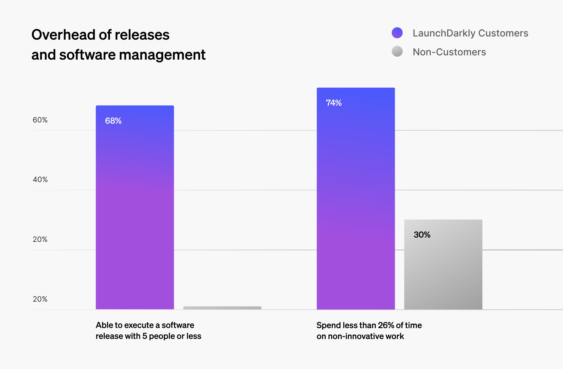 Nearly 70% of LaunchDarkly customers (vs. 1% of non-customers) can execute a software release with 5 people or less