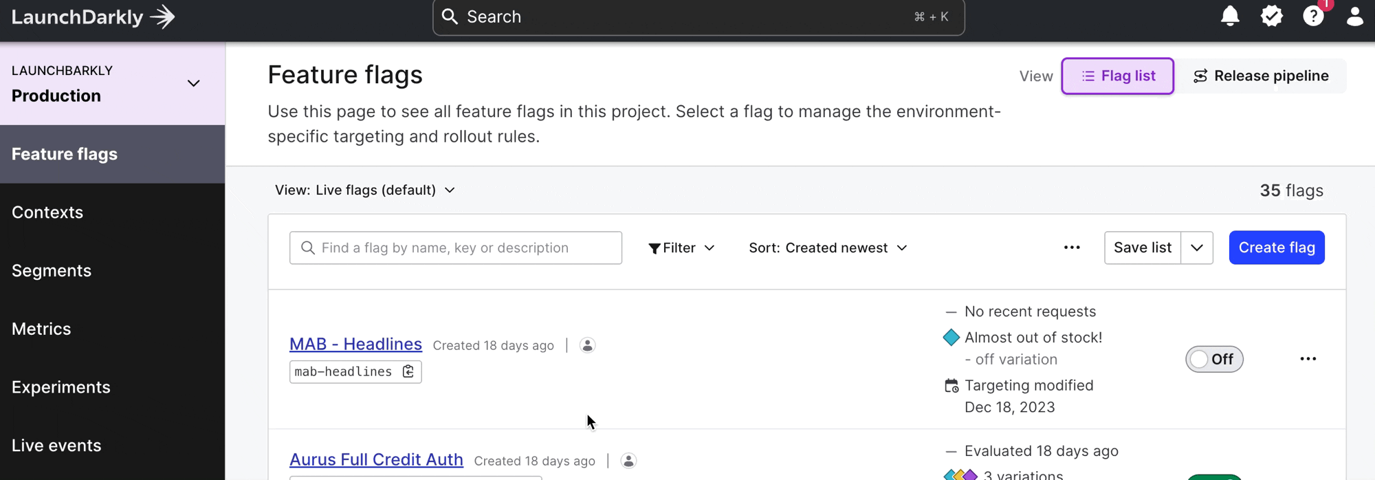 As with many things in LaunchDarkly, building an experiment is similar to creating a feature flag. (P.S. Haven't made a feature flag yet? That's okay, too; we're going step by step—no prior LaunchDarkly experience needed 😉)