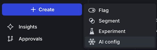 Go to the LaunchDarkly app. Click on the Create button. Select AI config from the menu.