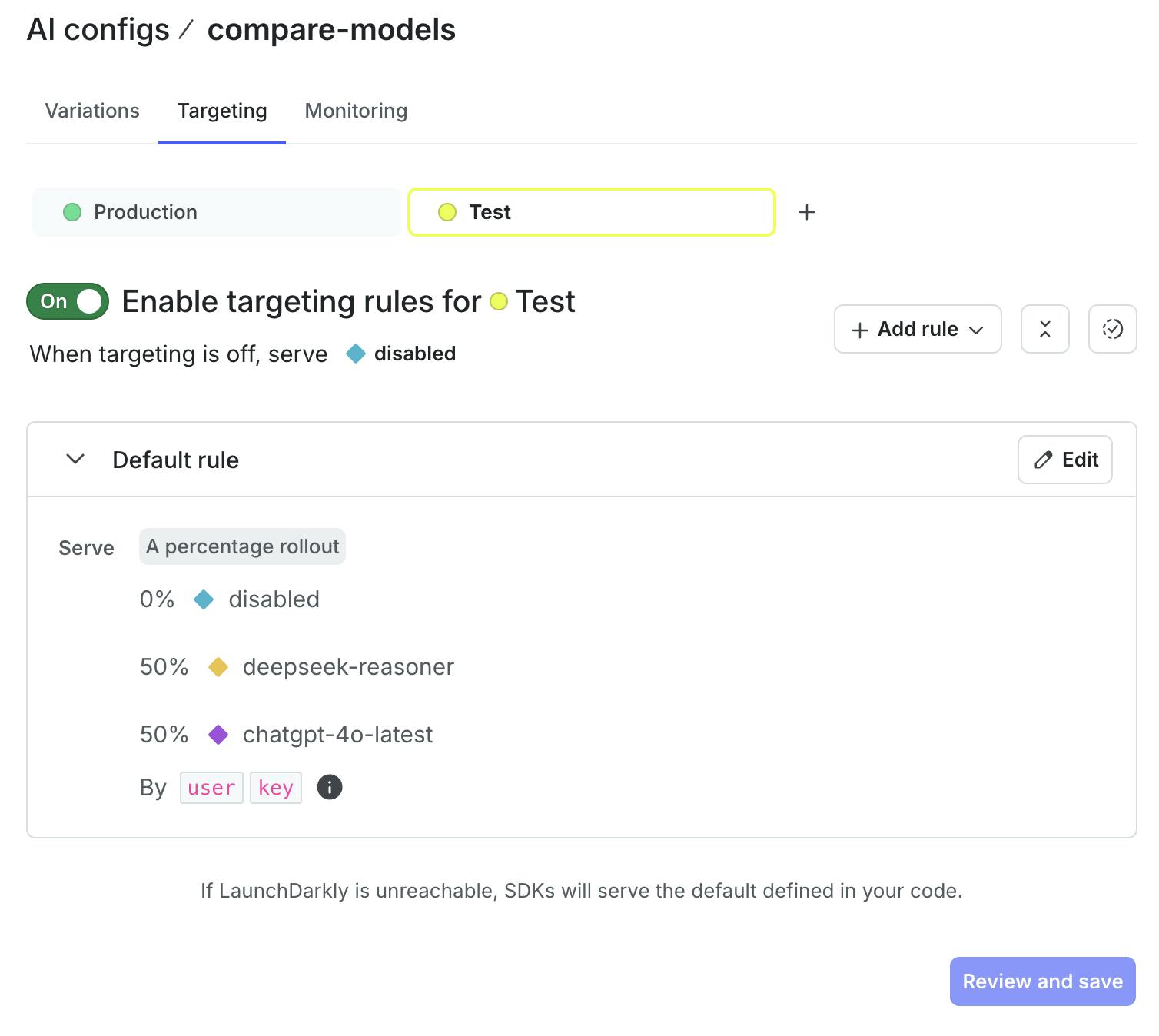 We’re going to use percentage rollouts to serve different AI models to users and record metrics about the generated results.