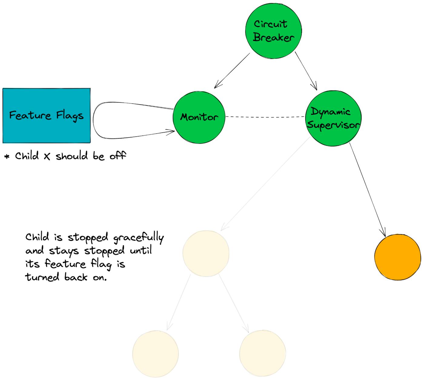 5. If the Monitor sees a flag off but a child is running, it tells the dynamic supervisor to terminate the child process.