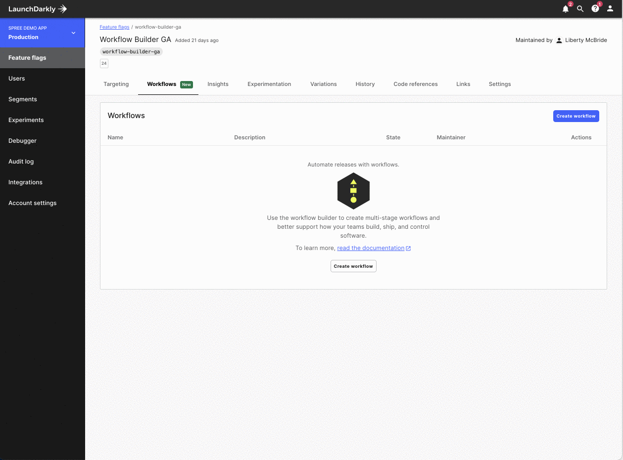 The Workflow Builder is available now on all Enterprise plans. Check it out by navigating to any feature flag and viewing the Workflows tab, or get in touch with our sales team. If you have any feedback as you get started with this feature, please share it with us at feedback@launchdarkly.com.