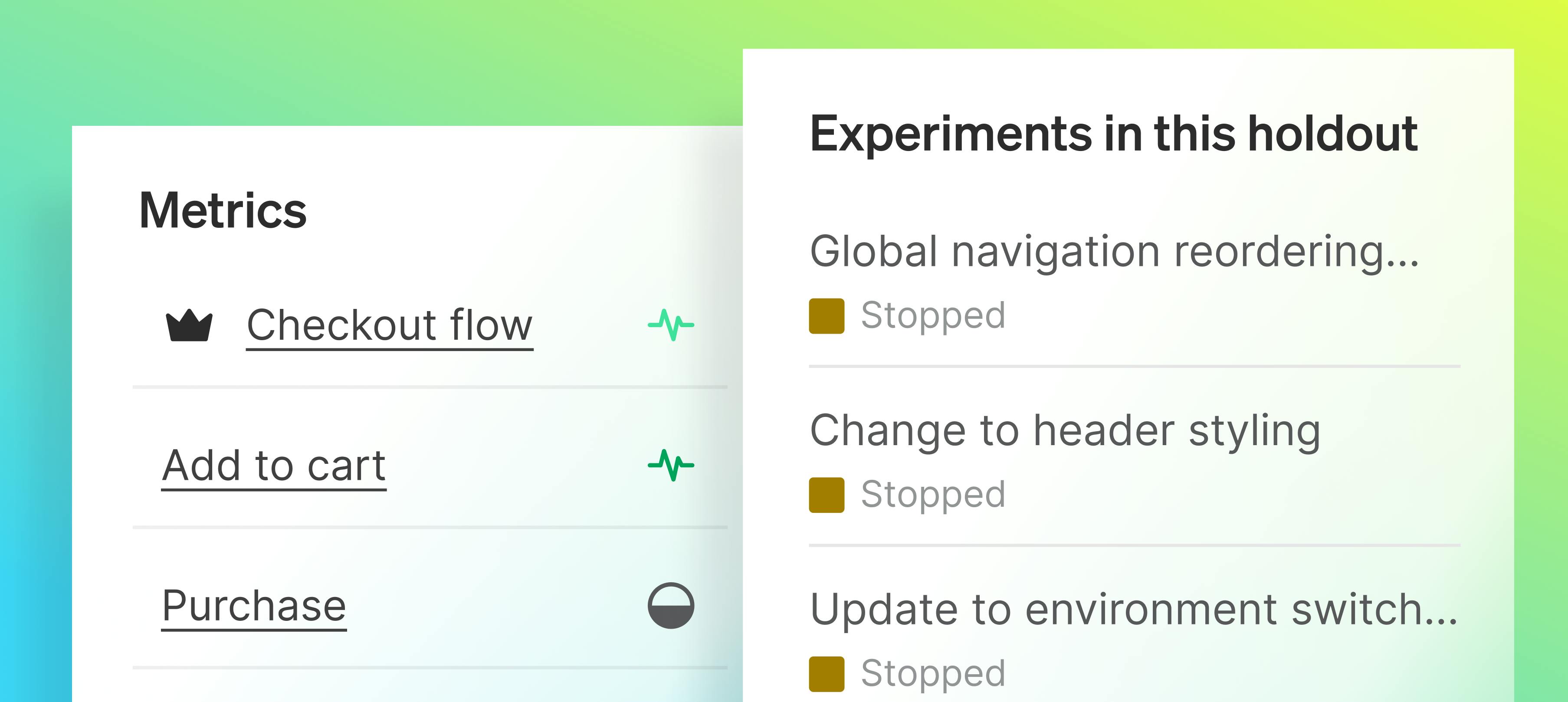 Easily compare the long-term lift on your metrics across many experiments with a control group that is deliberately excluded from experiments.