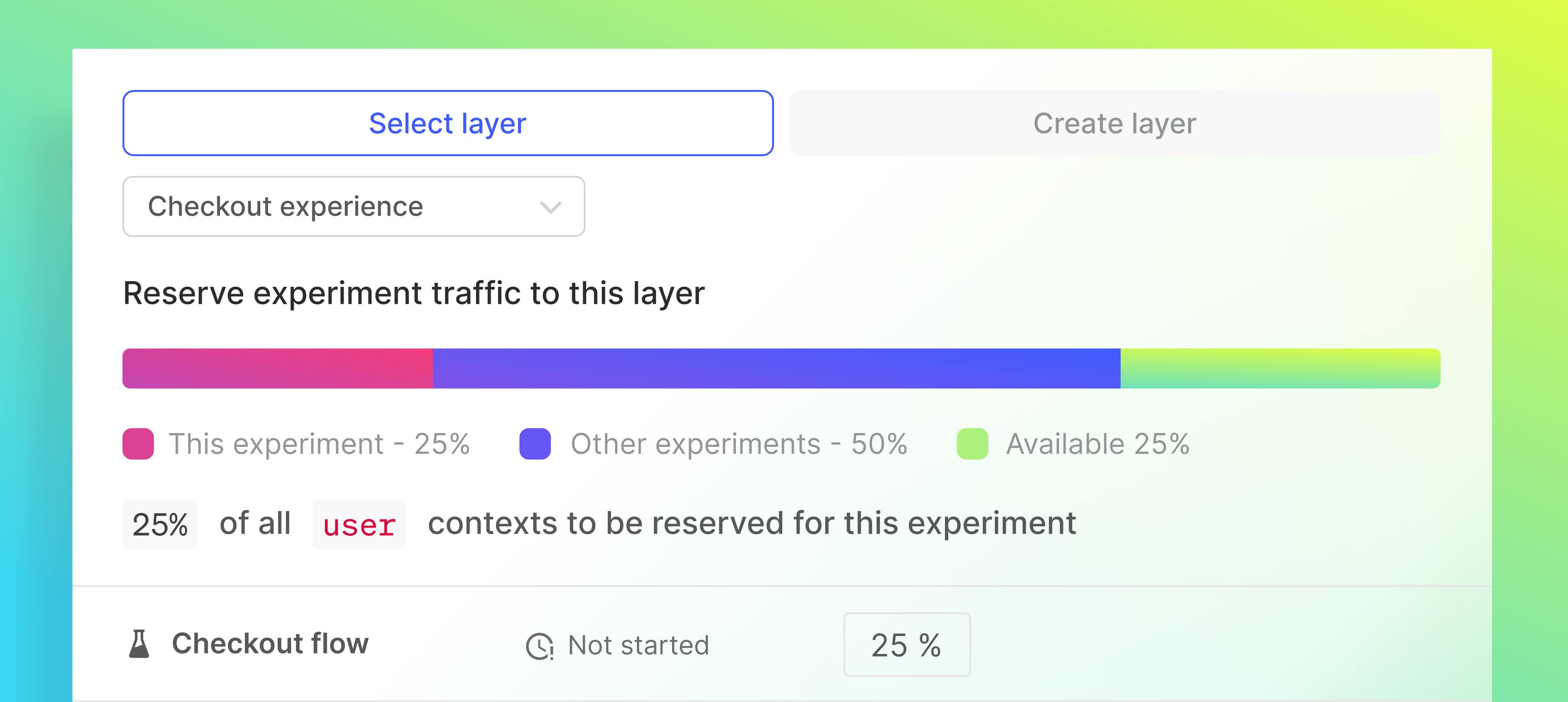 Leverage experiment layers to control experiment audiences and ensure experiments running in parallel do not have overlapping participants.