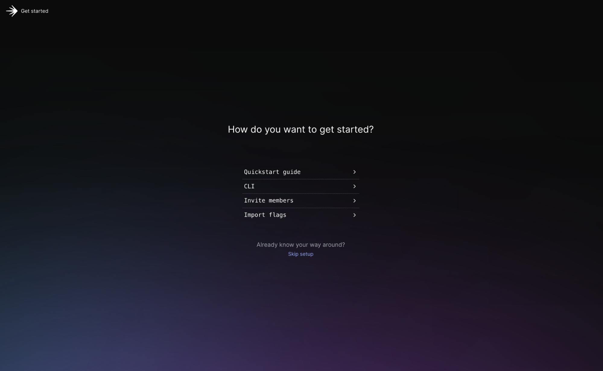 Head to LaunchDarkly in your web browser and create an account or log in if you already have one. If you're new, click ‘Skip setup’ after verifying your email.
