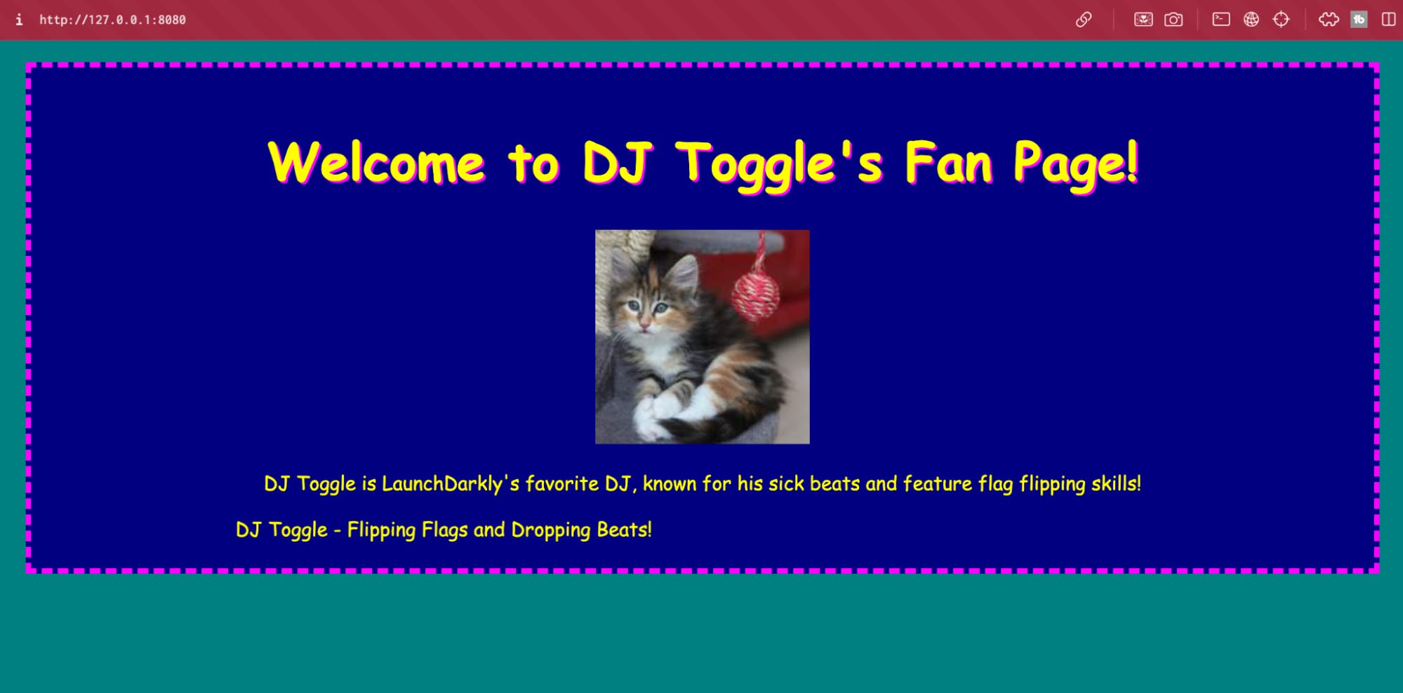 In this tutorial, we’ll use LaunchDarkly's feature flags in a JavaScript application. We’ll start with an example from my earliest days of internet building — building a fan page, which will demonstrate how feature flags work. The fan page will flip our DJ Toggle page from a 1995-style into 2000s-style site and back, depending on the state of a feature flag.