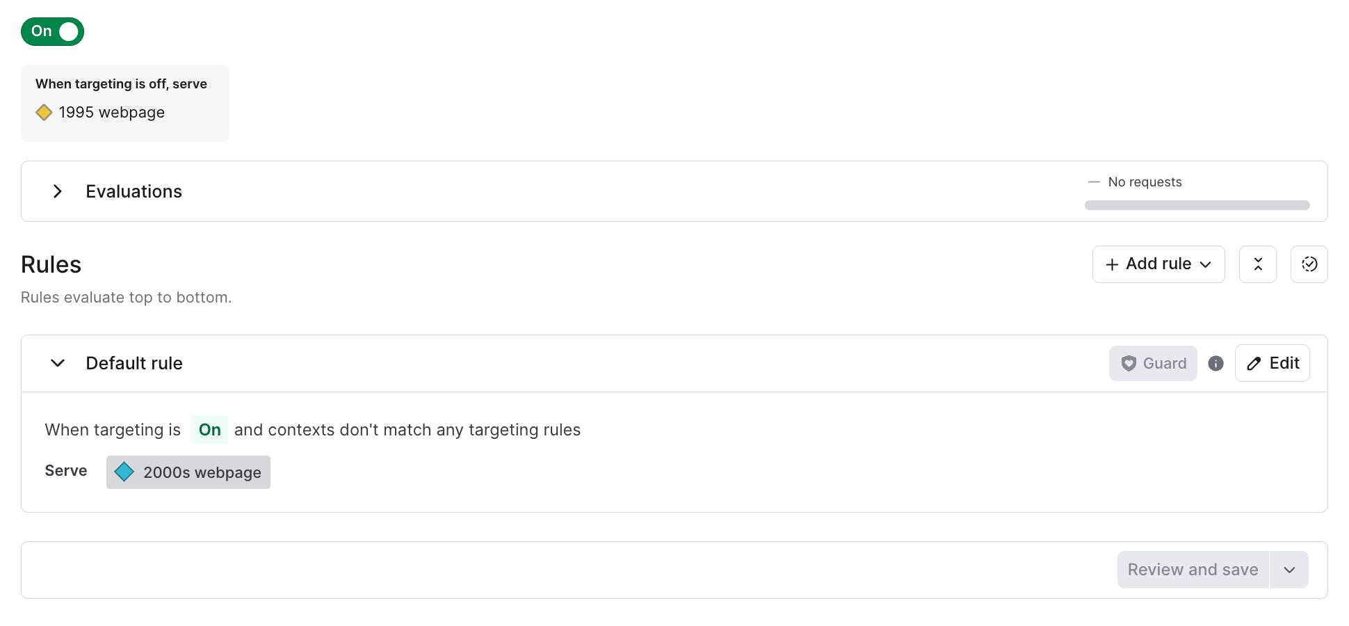 Go to your LaunchDarkly dashboard and toggle the ‘style-update' flag on. Return to the website and see how its look and feel have instantly been upgraded to the early 2000s, without having to redeploy.