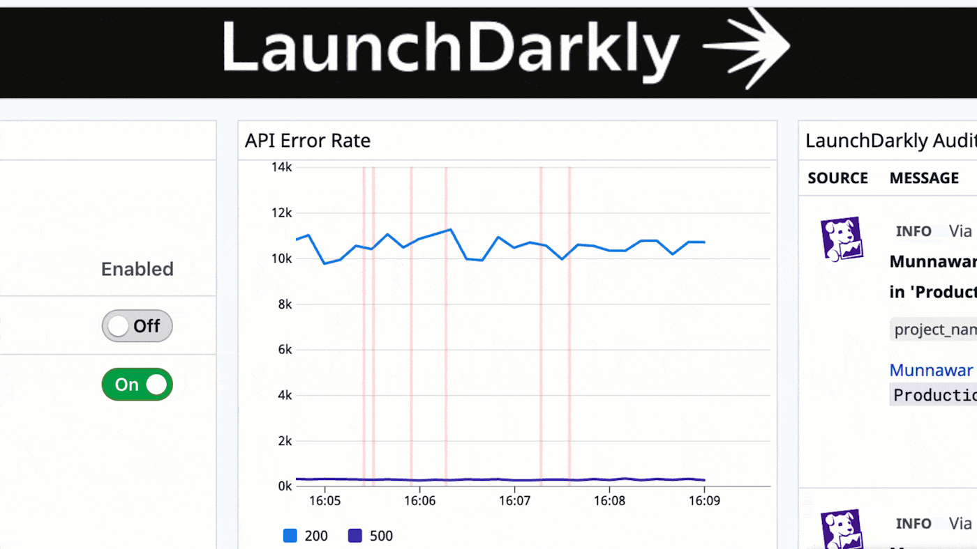 - Enables you to toggle features on and off directly within Datadog, reducing context switching and enabling you to instantly roll back a feature should a problem arise.