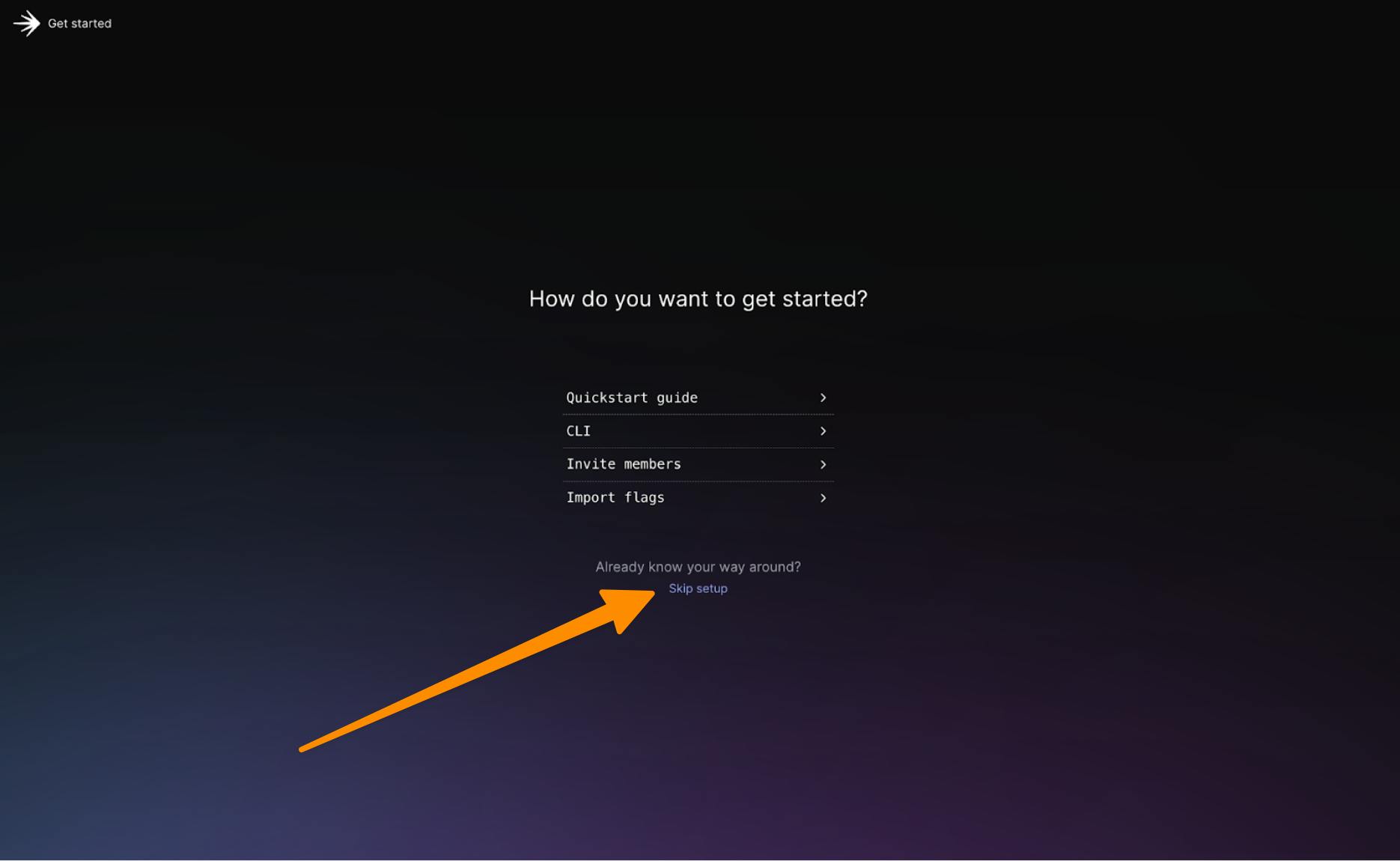 Head to LaunchDarkly in your web browser, log in to an existing LaunchDarkly account, or create an account with our free developer plan. If you're new, click ‘Skip setup’ after verifying your email.