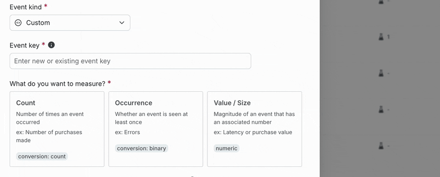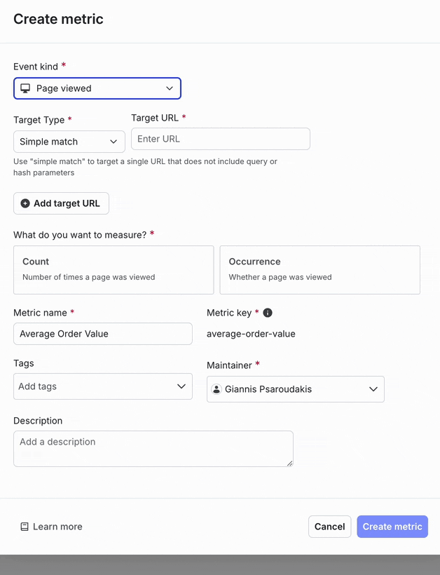 We’ve updated metric creation to be more intuitive and user-friendly. It all begins with a simple question: What do you want to measure? From there, you’ll see a guided flow, with prompts and explanations at each step, to ensure you’re setting up metrics that align with your goals.