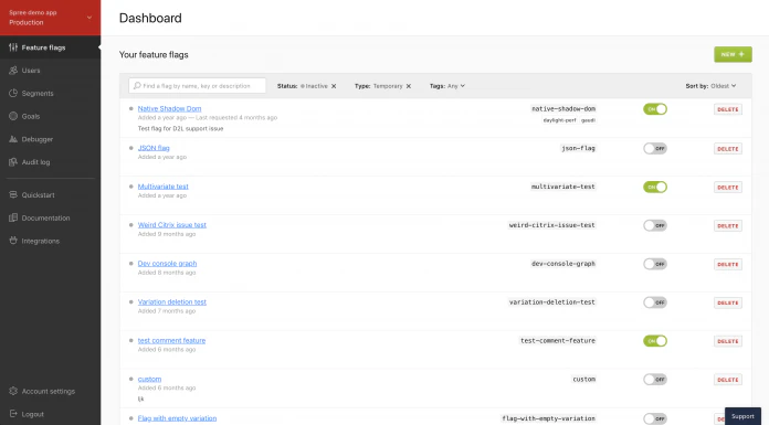 We created filters so you can easily find the flags you need, and get rid of the flags you don’t use. You can quickly understand which flags are ‘new’, ‘inactive’, ‘temporary’, or ‘permanent’. Despite the hundreds of flags you may have, you can now easily access your flags in a fast and efficient manner. The filters feature is now available on your LaunchDarkly dashboard.