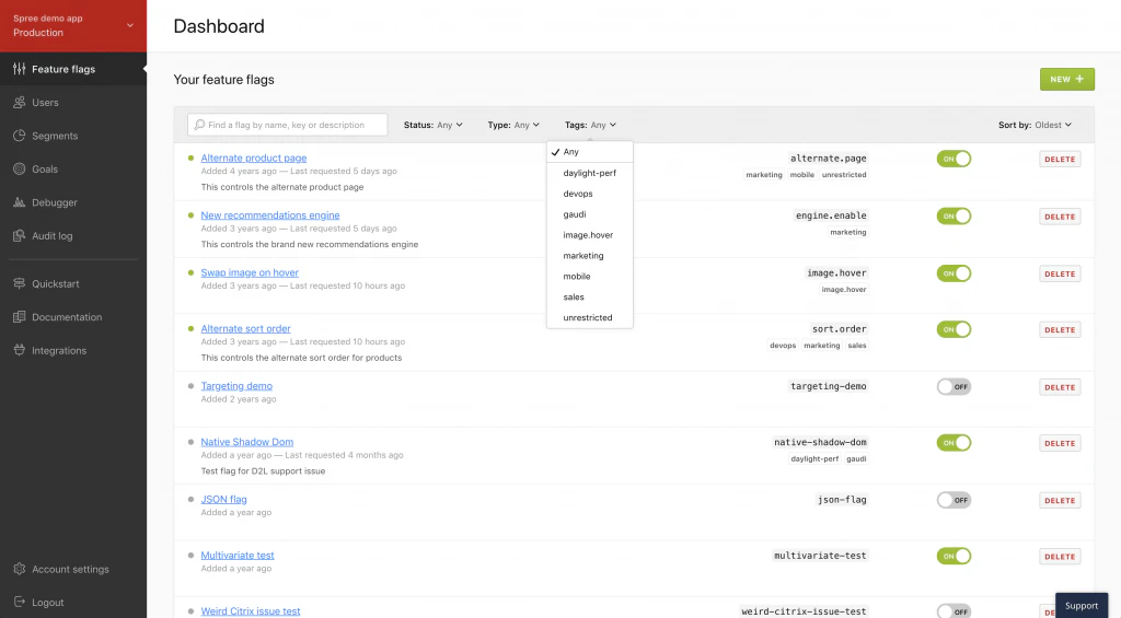 Many of us maintain more feature flags than we can handle. You might have started out with just a couple of flags, at some point realized how amazing feature flagging is, and now you just have too many to manage. Even using tags, you could have long lists of flags to scroll through. Some of you asked us for a ‘filters' feature to help search for flags, and we heard you.
