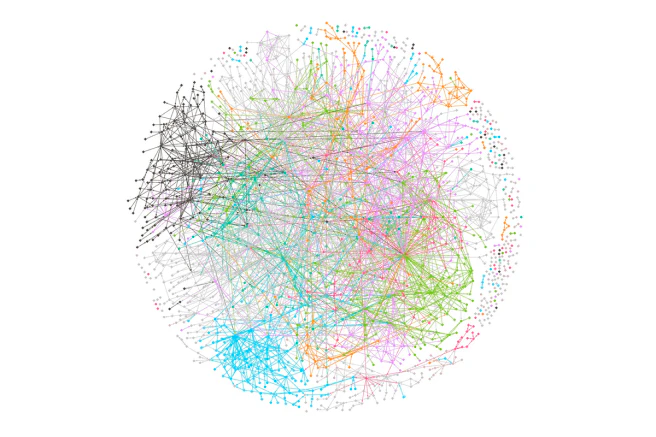 Monzo’s network of microservices. Each service is represented by a dot and the lines are the rules that allow communication between the services.