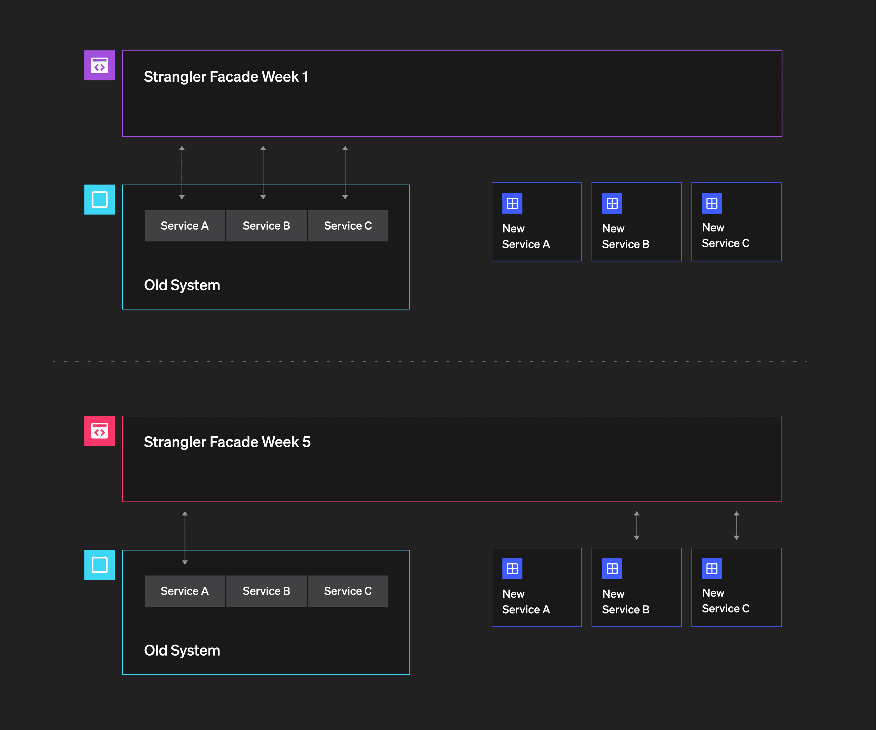 There are a number of migration strategies you can employ when looking to decompose your monolith. Below are two of the most common approaches: