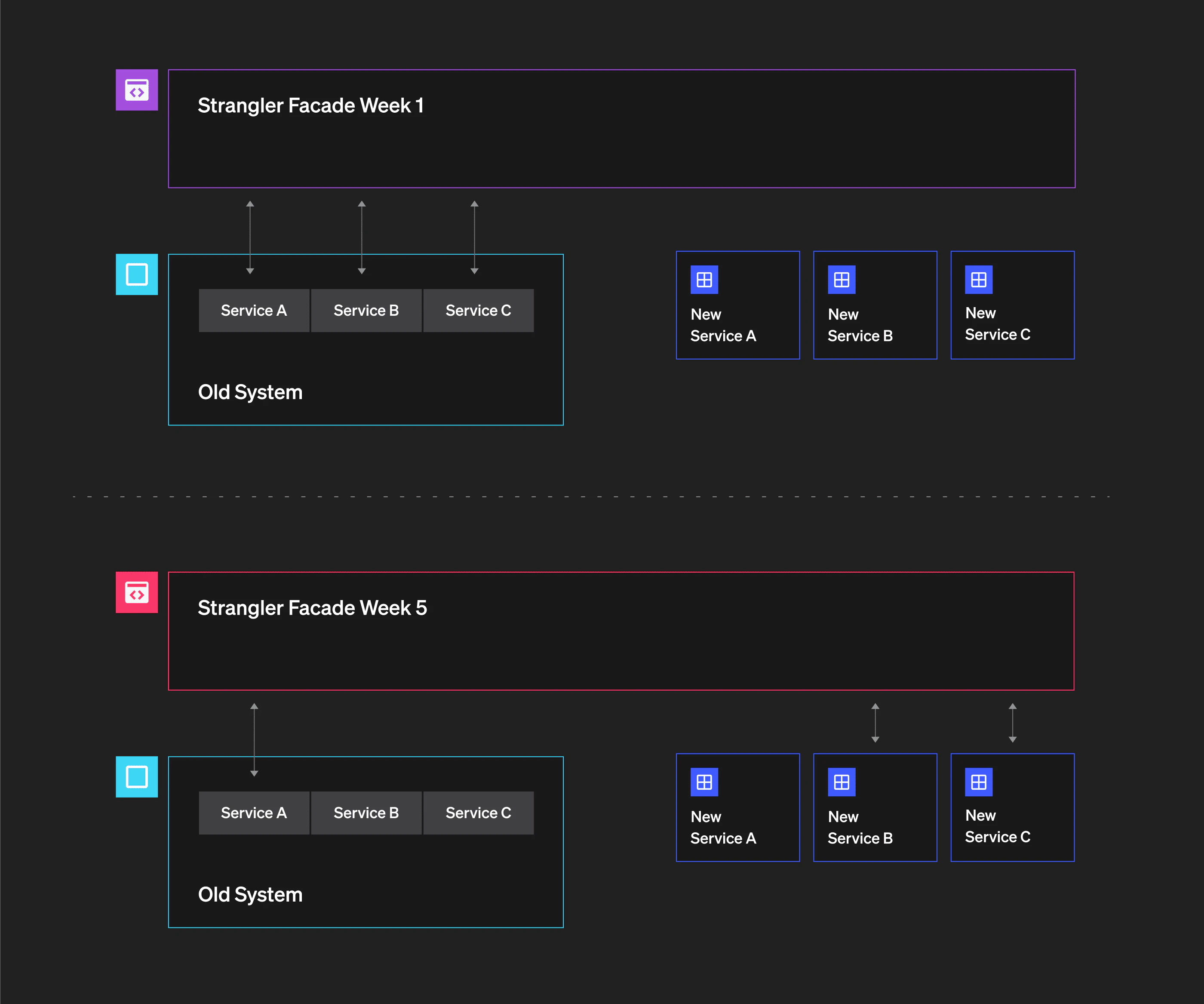 Stage 3: Decommission the monolith-based service and switch all traffic over to the microservice.