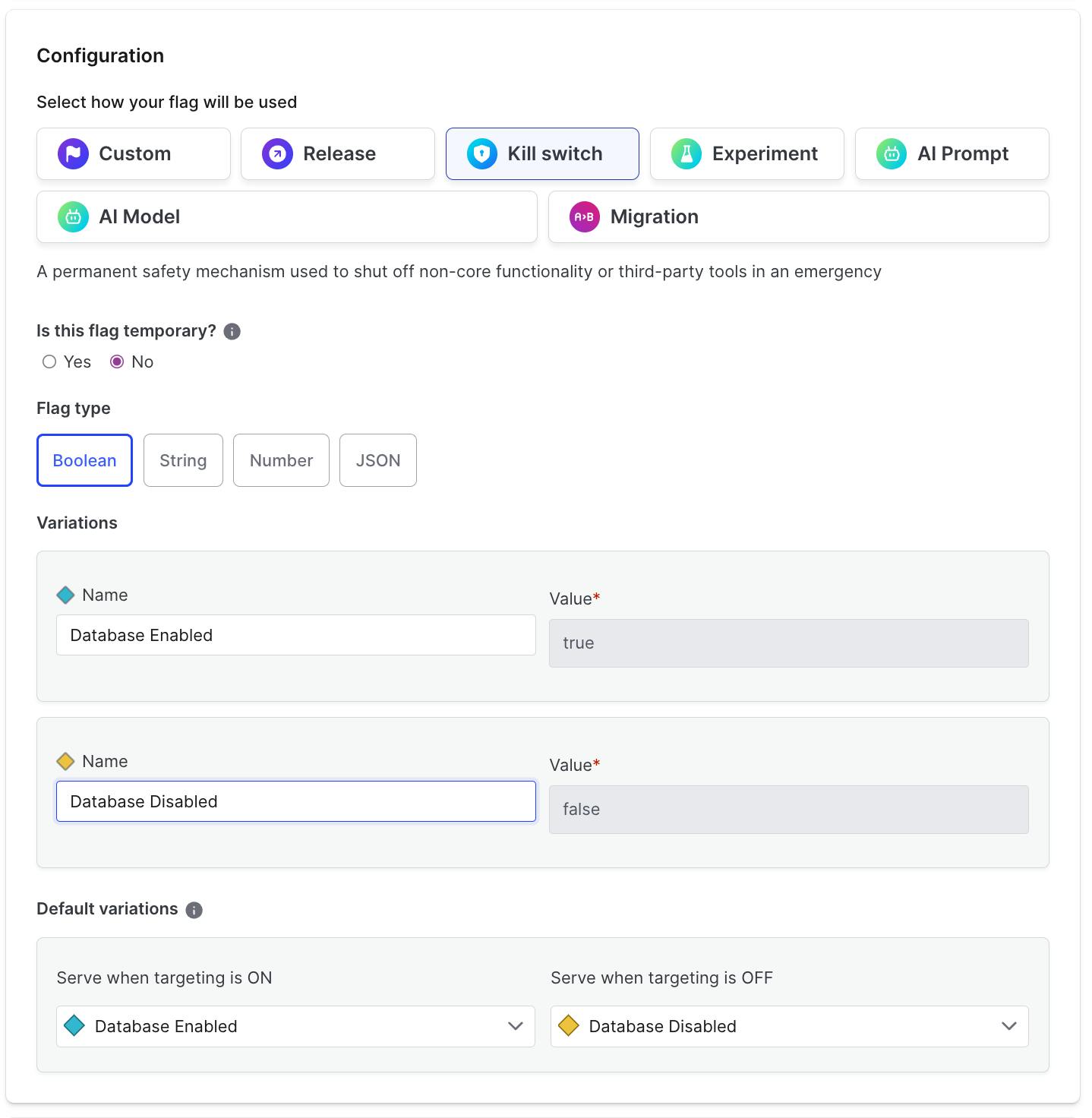Implementing feature flags is one of the best ways to keep innovating quickly while mitigating risk. Kill Switch flags can help you swiftly disable potentially problematic features, preventing outages within your application and maintaining a top-tier user experience.