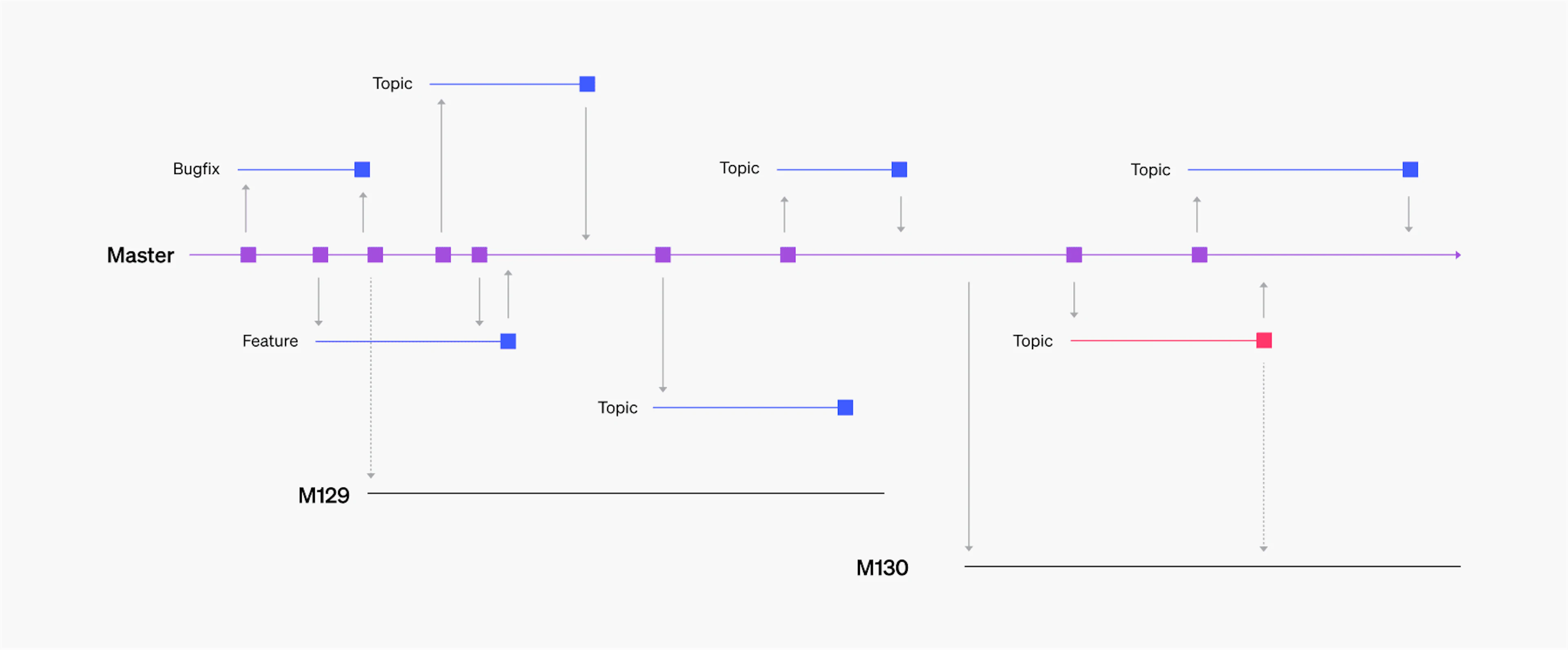 Git branching with feature flags