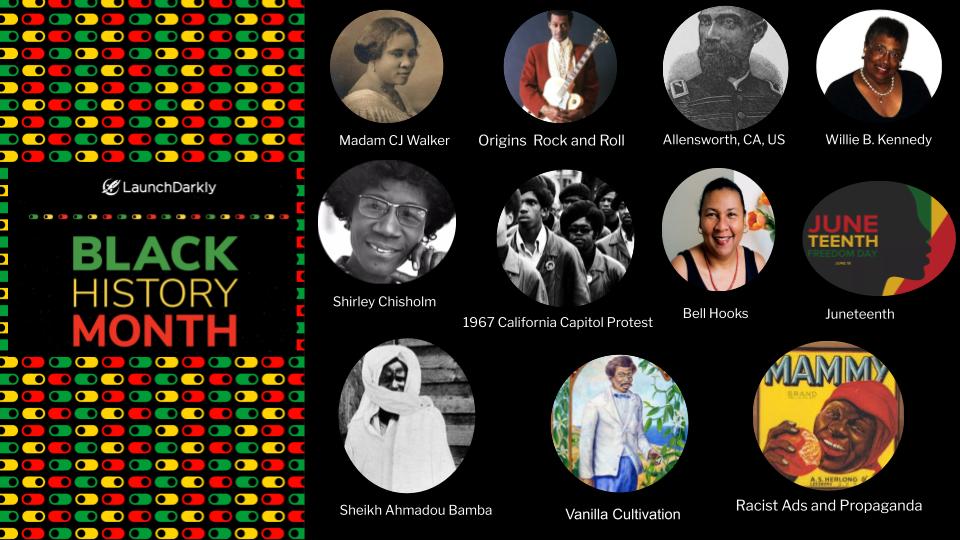 Throughout February, LaunchDarkly employees have been creating and sharing internally nearly daily doses of black historical facts and figures (illustrated below) that have shaped and continue to transform our world for good. The project has also helped to raise awareness around some of the discrimination and stereotypes that were so prevalent in the past, and yet unfortunately still find ways of popping up today.