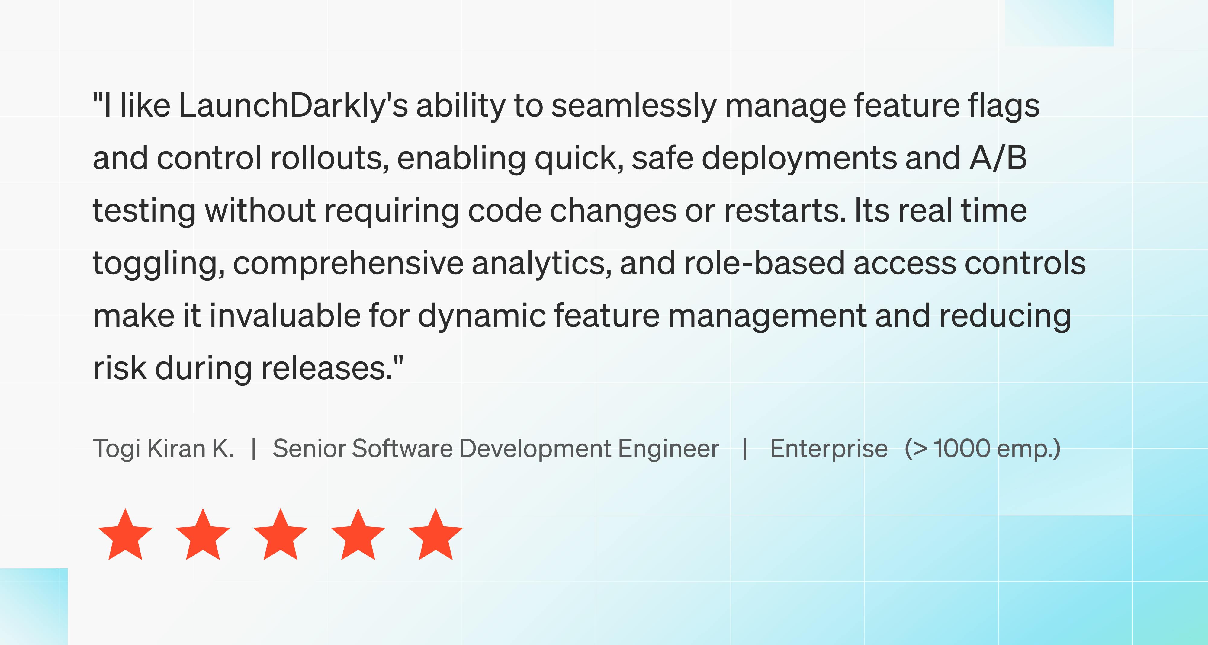 This recognition reflects real customer feedback about how our users and their teams use LaunchDarkly every day to manage rollouts, reduce risk, and move faster with confidence.