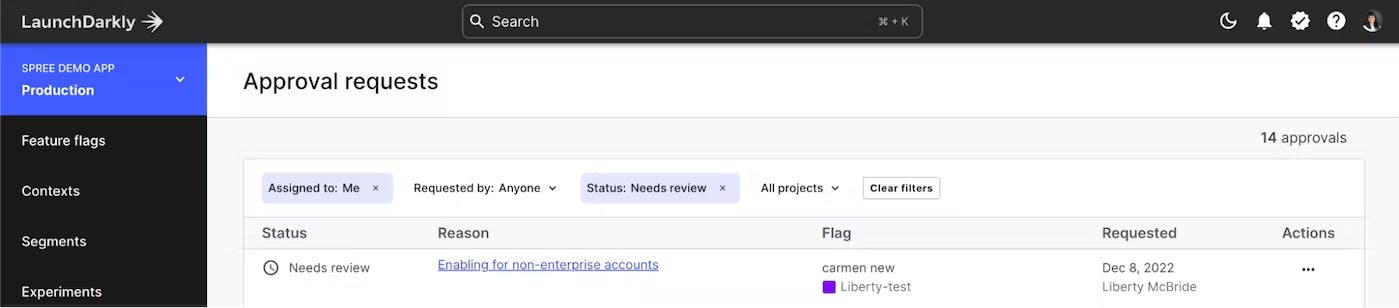 With a singular location to manage approvals, LaunchDarkly customers can now quickly locate, manage, and complete all their approvals across feature flags.