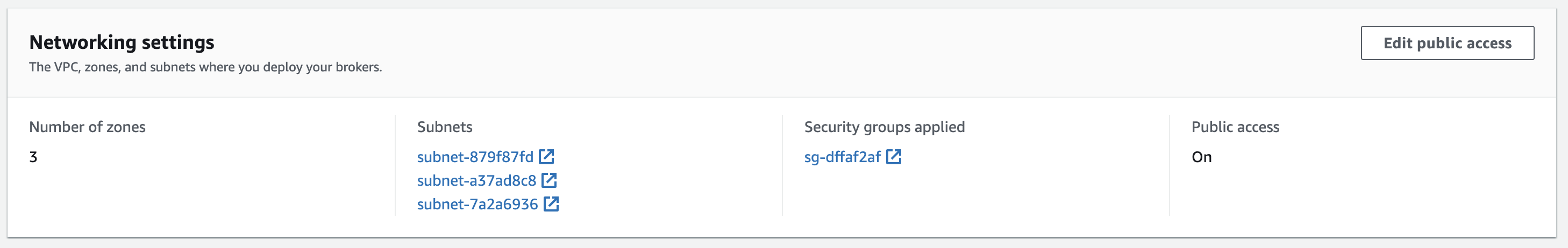 Depending on how you will be connecting to the cluster, you’ll need to configure the networking settings accordingly. If you are only connecting to Kafka from inside your private VPC, then private networking is typically sufficient. On the other hand, if you’re planning to connect to the cluster from the internet (ie. if you were using the Kafka cluster as a development instance from your local machine), you’ll need to set up public access. You will also need public access if you plan to monitor your cluster from a tool hosted on the internet, like with provectuslabs.