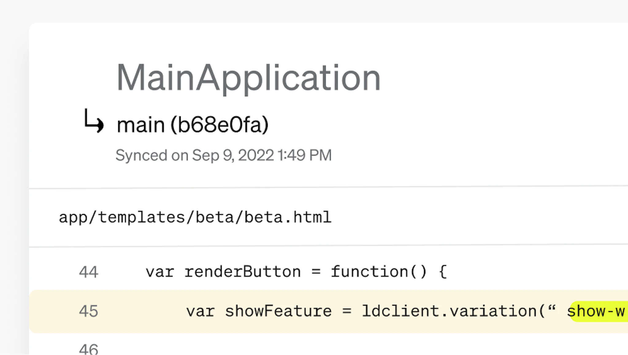 LaunchDarkly provides specialized tooling to help you identify all the locations within your codebase where a particular feature flag is being used. References are automatically updated with every commit to GitHub, Bitbucket, GitLab, or other Git code hosting tool.