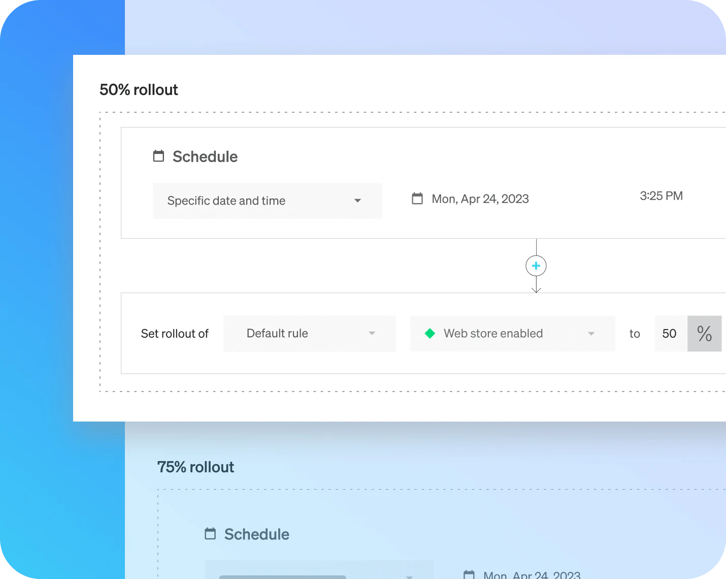 LaunchDarkly provides the tools to release features gradually and gather insights that ensure a feature’s success. Progressively make a feature available to an increasing number of users over time via percentage-based rollouts or expanding segments.