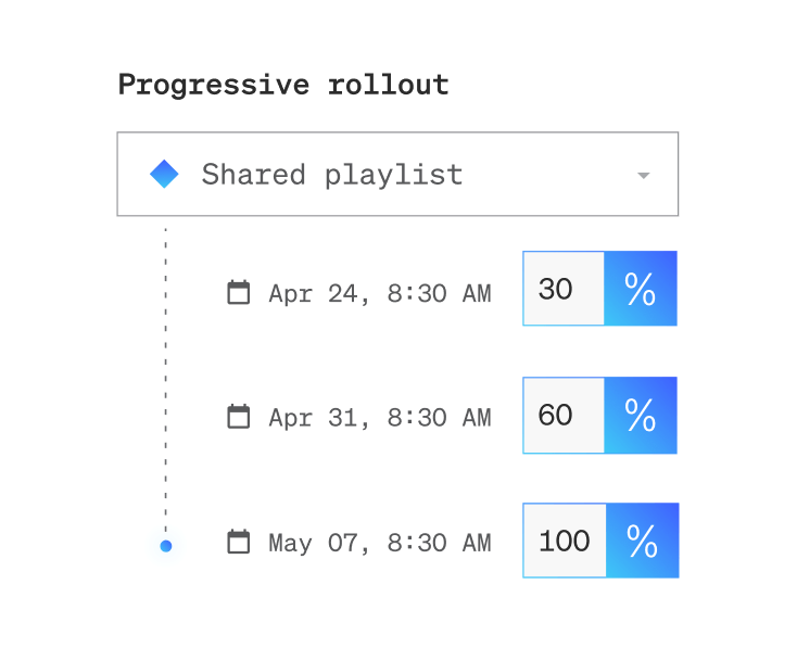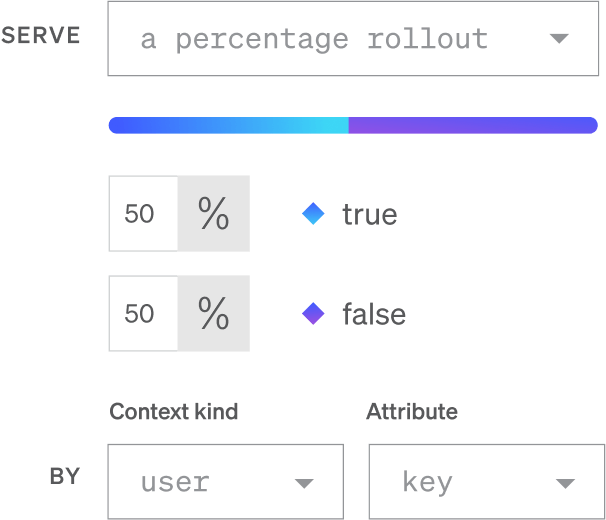 LaunchDarkly allows you to gradually roll features out to small cohorts representing a random sampling of customers. With these percentage rollouts, you control the percentage of users who have access to a feature at a given time.