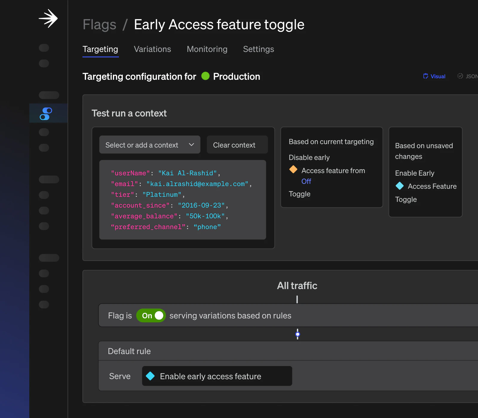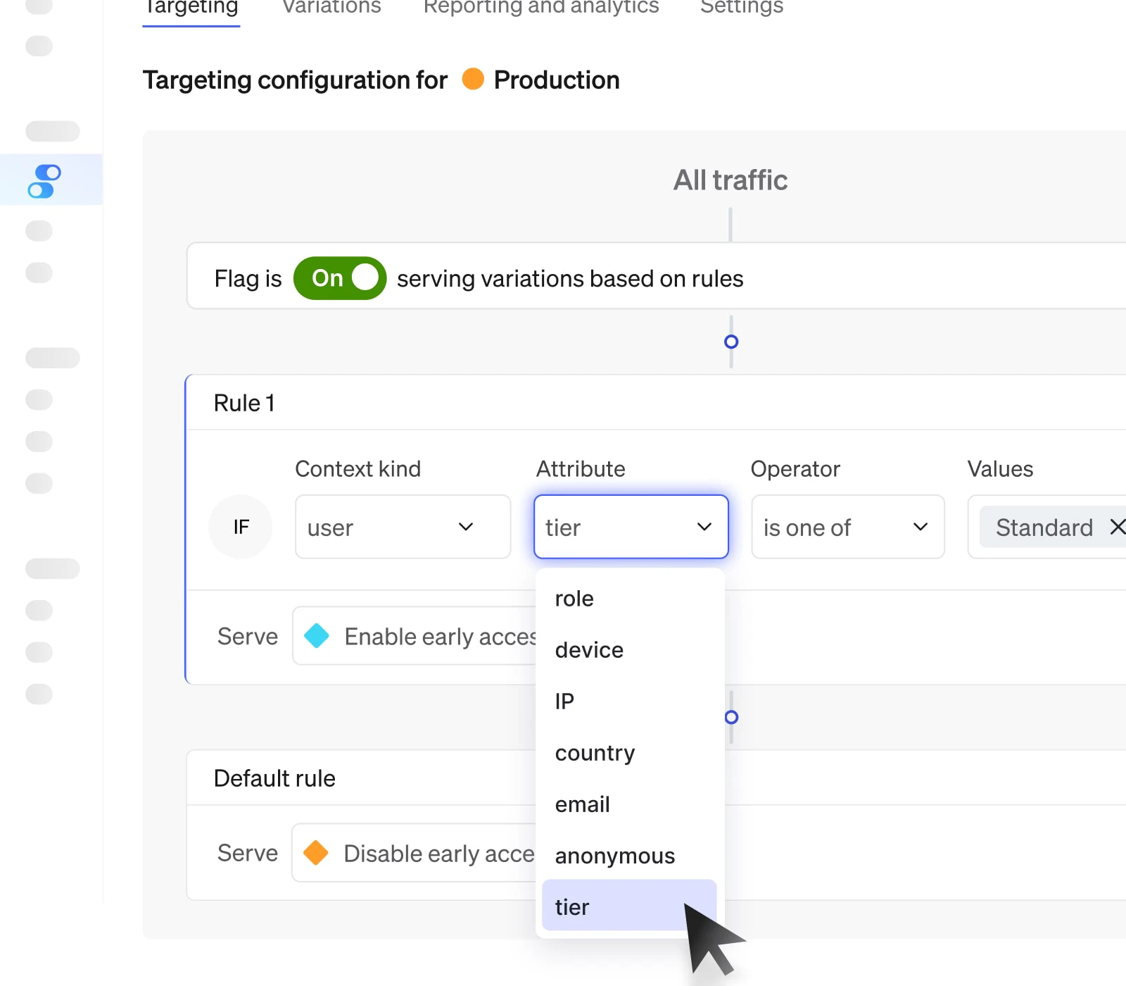 Serve the right features to the right users at the right time, based on any attribute you define.