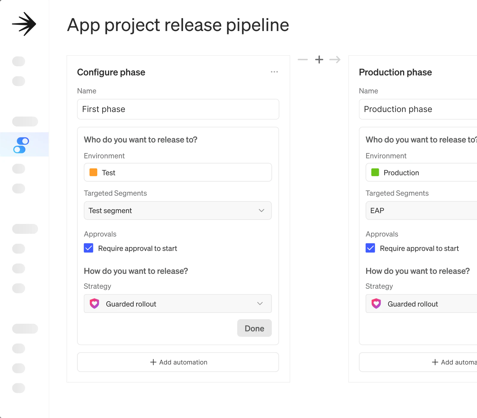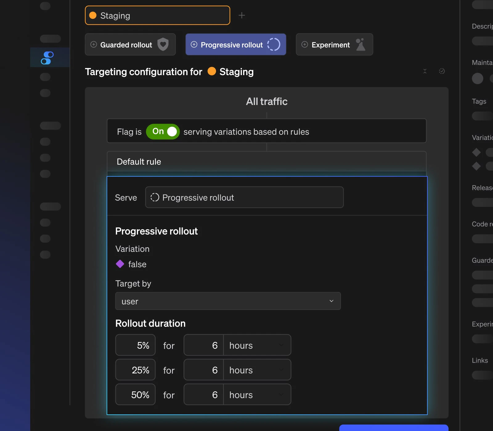 Ship to 1%, 10%, or specific segments to validate before scaling up.